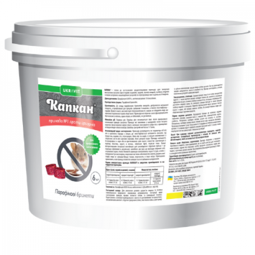 КАПКАН 6 — це потужний родентицид у формі готової до використання принади для ефективного контролю чисельності чорних та сірих пацюків, водяних щурів, хатніх та інших мишеподібних, ховрахів, рудих полівок, піщанок. Засіб застосовується на промислових, комерційних, сільськогосподарських та побутових об’єктах, а також на відкритих територіях.